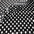 Атлас тонкий принт (черный фон белый горох 1,8см)