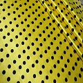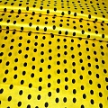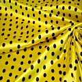 Атлас тонкий принт (желтый фон черный горох 1см)