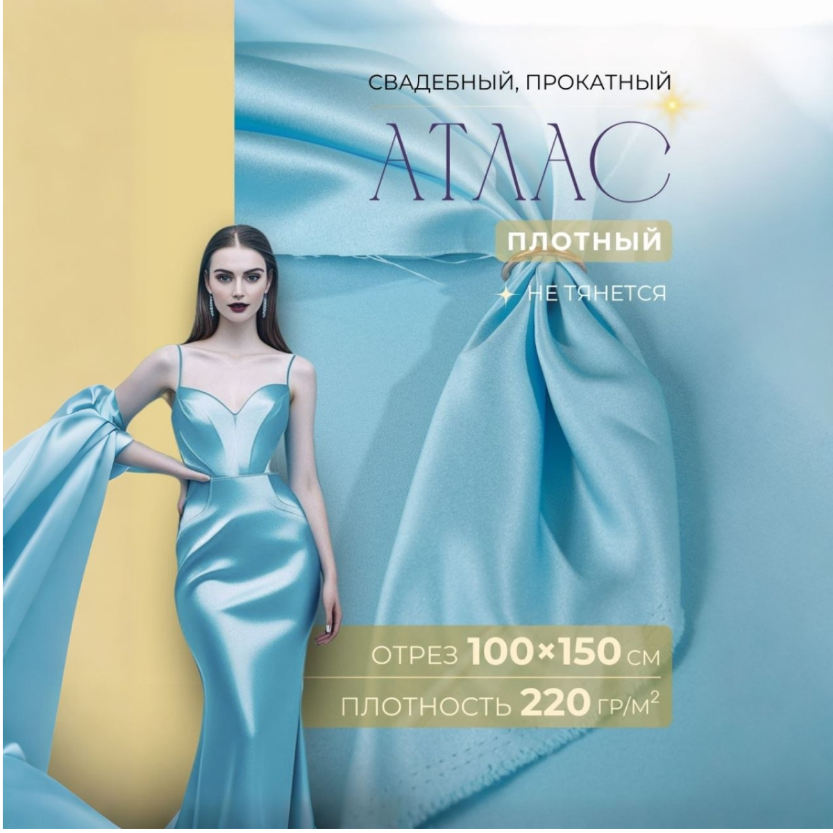 Ткань не мнется, не дает усадку, устойчива к выгоранию. Вечернее платье из прокатного атласа можно хранить в шкафу в сложенном виде – перед выходом достаточно повесить на пару часов,