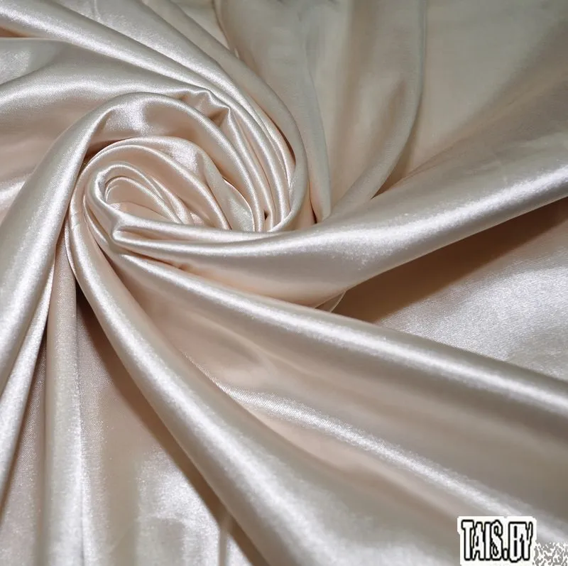 Атлас стрейч тонкий с атласным блеском ткани. Ткань применяют в пошиве свадебных, бальных, выпускных, вечерних и повседневных нарядов, а также аксессуаров к ним. Так же ткань применяют в оформлении и декоре помещений.