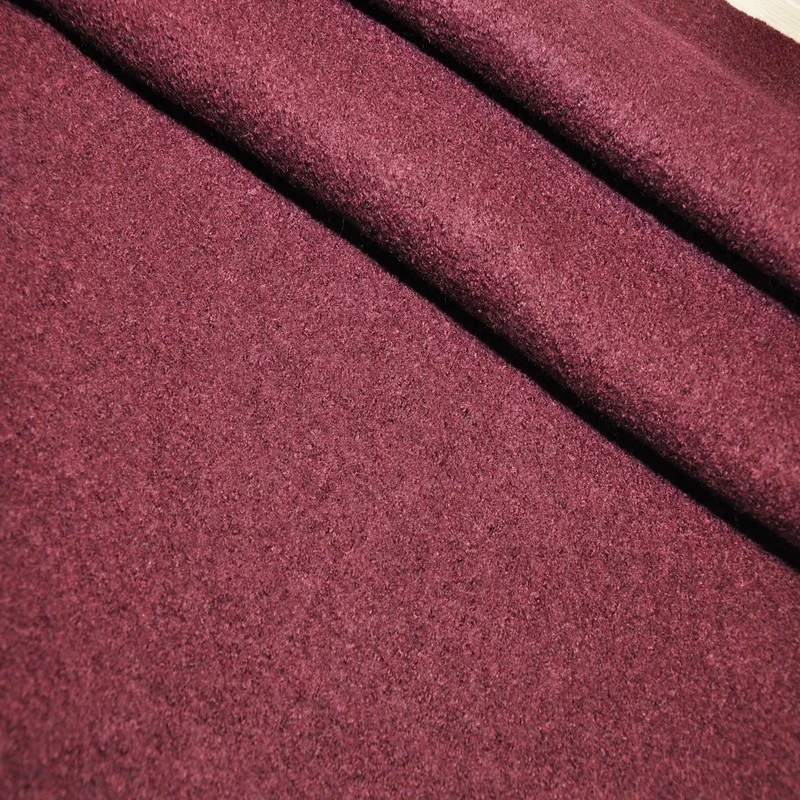 Ткань представляет собой плотное и шероховатое полотно, поверхность рельефная, плетение выполнено буклированными (крученными) узелками, что придает ей объемность. Стрейч отсутствует. Изнаночная сторона имеет шерстяную вязку. Букле шерсть идеально подходит для пошива пальто, плотных жакетов.
