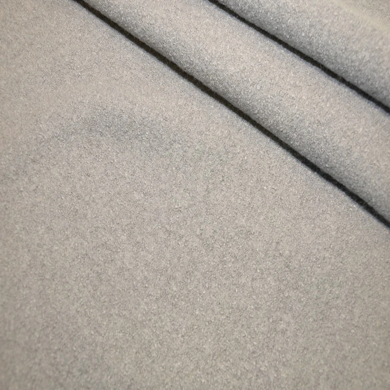 Ткань представляет собой плотное и шероховатое полотно, поверхность рельефная, плетение выполнено буклированными (крученными) узелками, что придает ей объемность. Стрейч отсутствует. Изнаночная сторона имеет шерстяную вязку. Букле шерсть идеально подходит для пошива пальто, плотных жакетов.