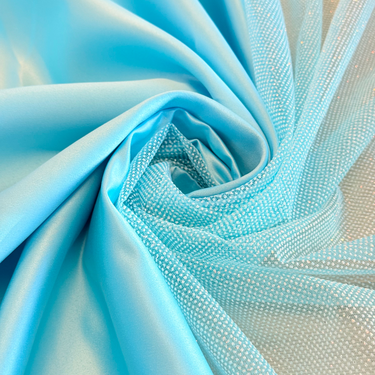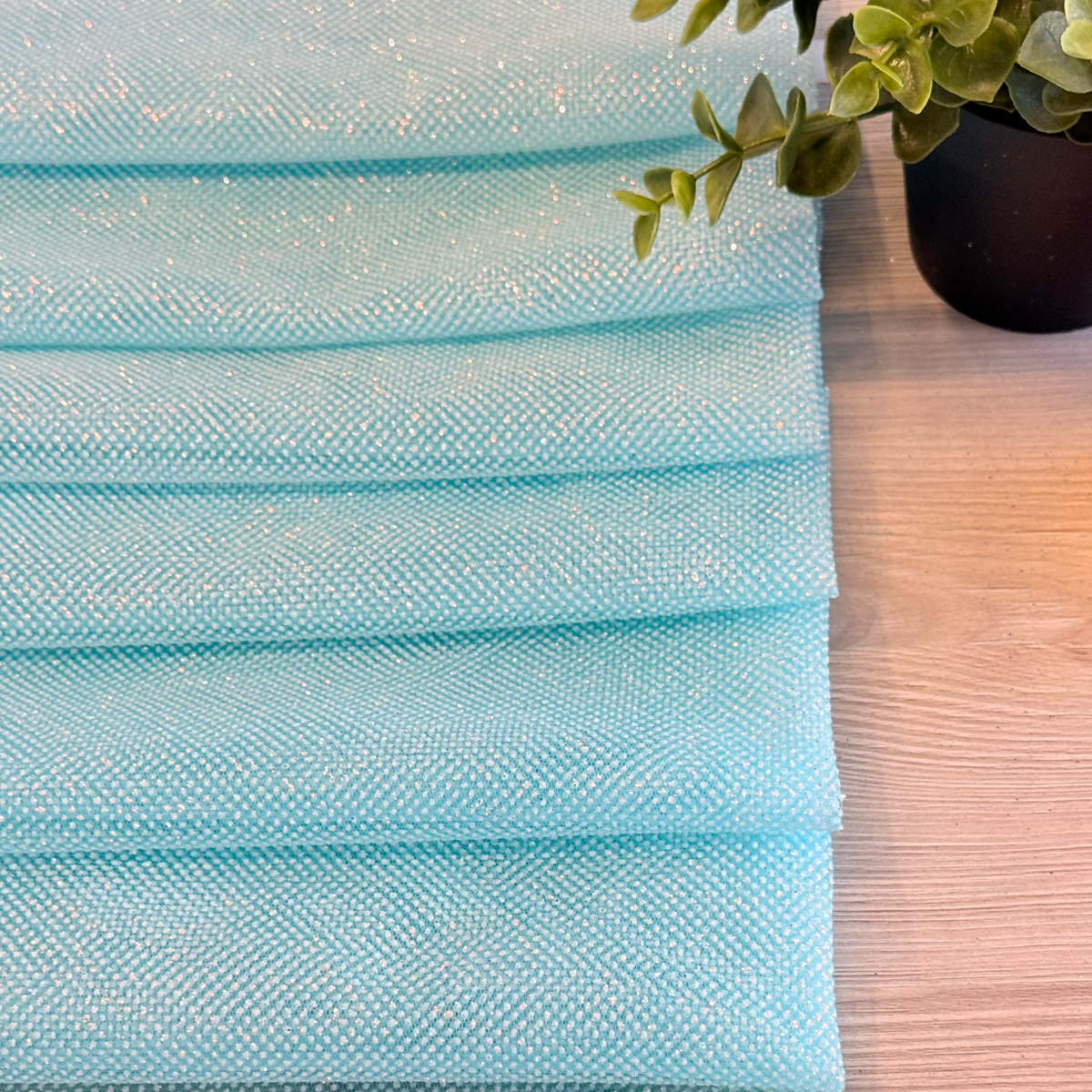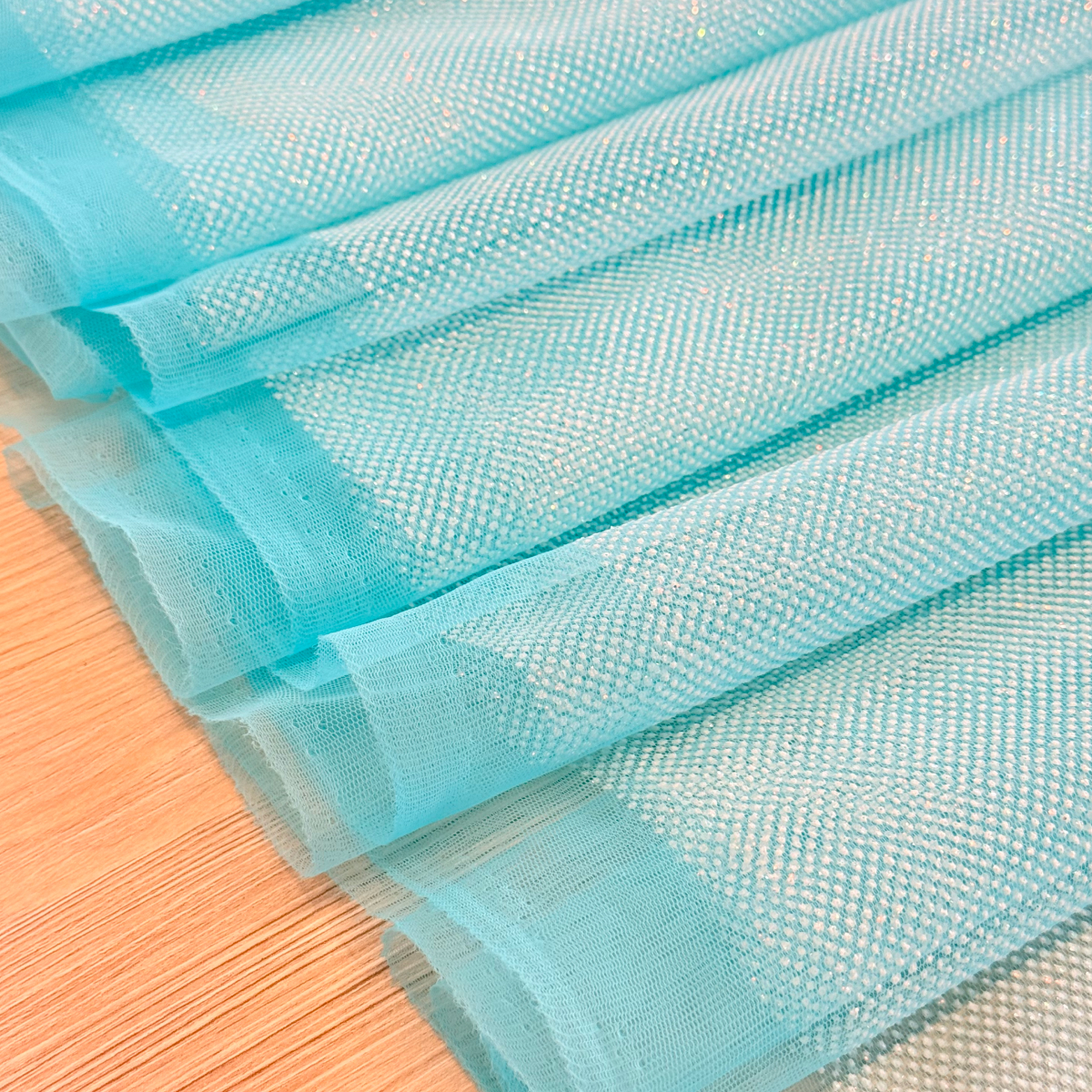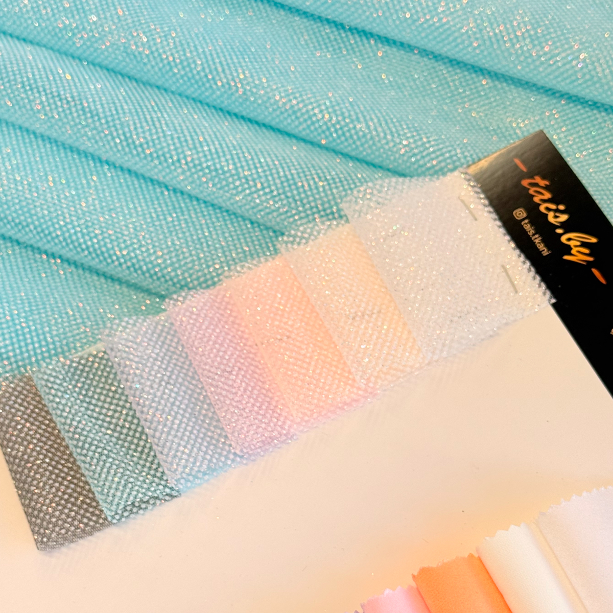 Фатин  с мерцающим глиттером — это воплощение изысканного свадебного стиля. Мягкий с деликатным напылением создает эффект «живой» ткани, которая мягко переливается при каждом движении. Благодаря мягкой основе, этот материал становится идеальным выбором для создания многослойных свадебных юбок, изысканных фат и праздничных нарядов, где важна гармония между блеском и нежностью.