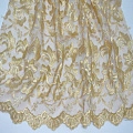 Гипюр - это кружевное сеточное полотно, ширина полотна 100 см, кромка фигурная. Гипюр может быть разной плотности, рисунок может быть различной величины. Может использоваться как самостоятельно, так и в роли дополнительных элементов: манжеты, воротники, а также пользуется популярностью для создания танцевальных костюмов.