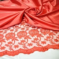 Гипюр - это кружевное сеточное полотно, ширина полотна 110 см, кромка фигурная. Гипюр может быть разной плотности, рисунок может быть различной величины. Может использоваться как самостоятельно, так и в роли дополнительных элементов: манжеты, воротники, а также пользуется популярностью для создания танцевальных костюмов. Красное платье с гипюром обязательно сделает Вас заметной на любом мероприятии.