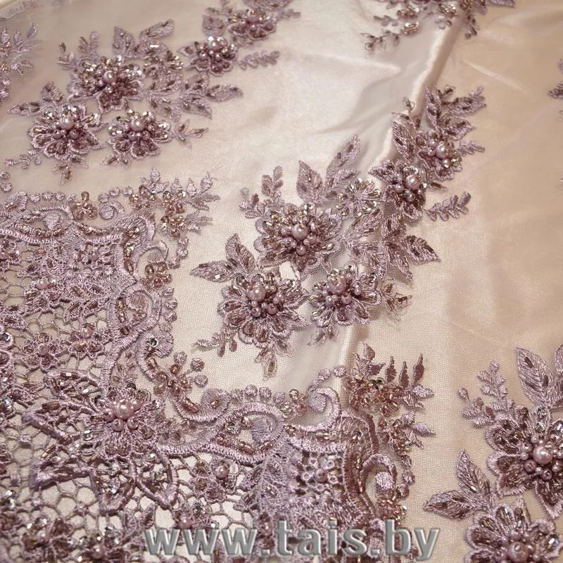Вышивка на сетке с биссером (пыльно-фиолетовый) купить в Минске оптом и в розницу | Трикотаж tais.by