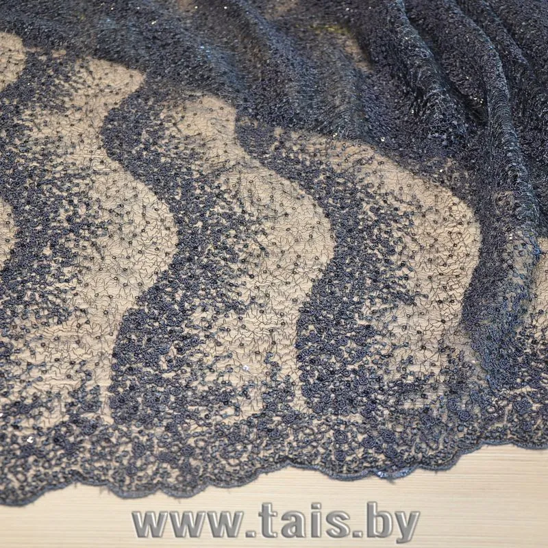 Вышивка на сетке с пайетками "Волна" (графит)