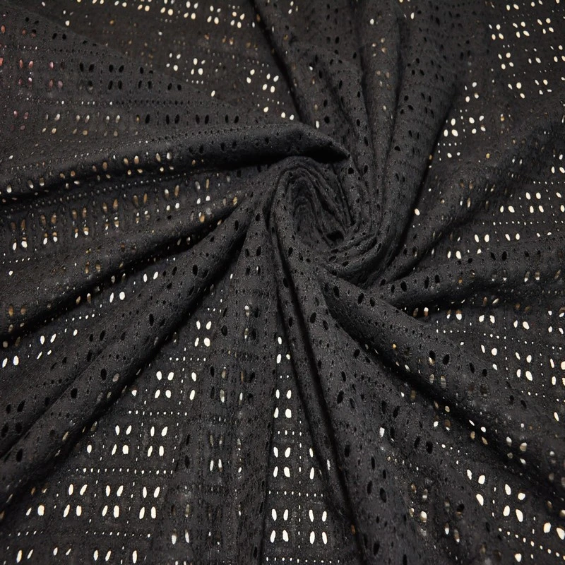 Батист вышитый, прошва квадратики (черный)