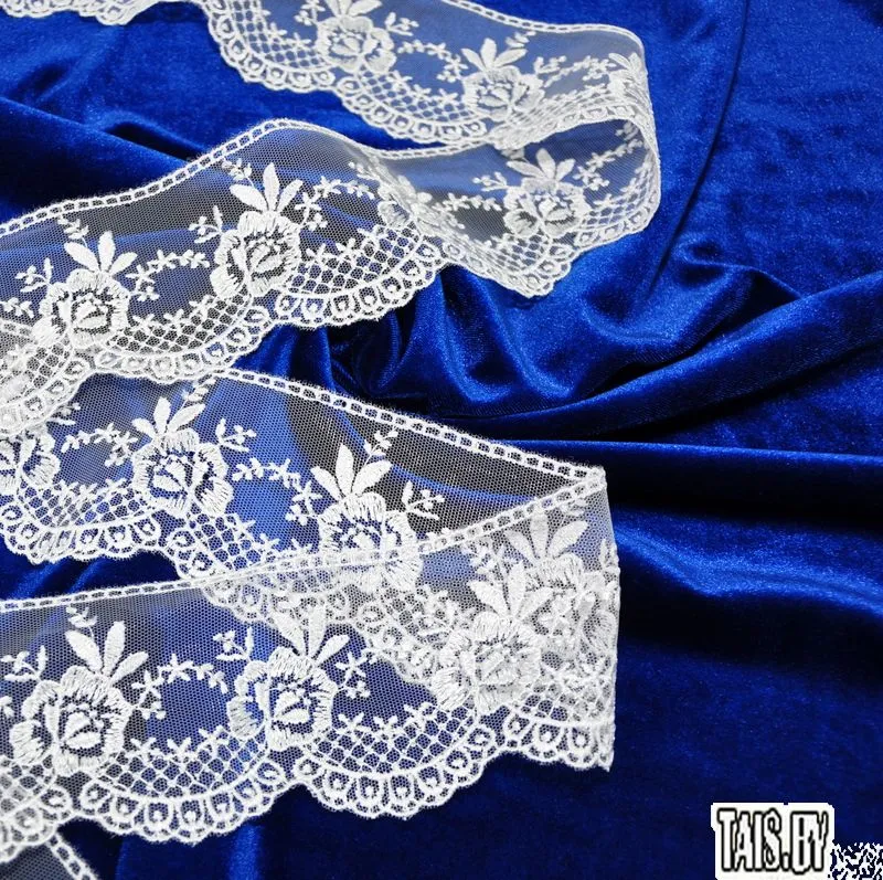 Тесьма ажурная. Кружево применяется для отделки одежды, белья в виде окаймления или вставок, а также в оформлении интерьера, декоративных панно, скатертей, тюлей, покрывал. Главные особенности кружева - воздушность, тонкость, узорность.