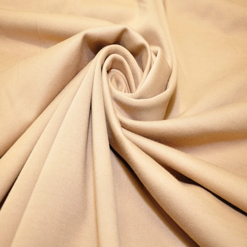 Плотное, но не толстое трикотажное полотно джерси в однотонной расцветке. Материал имеет ровную гладкую поверхность, и достаточно упругий. В составе джерси есть нейлон, он делает джерси более износостойким, так же благодаря ему джерси не пилингуется. Джерси прекрасно подходит для пошива юбок "карандаш", кардиганов, платьев и жакетов.