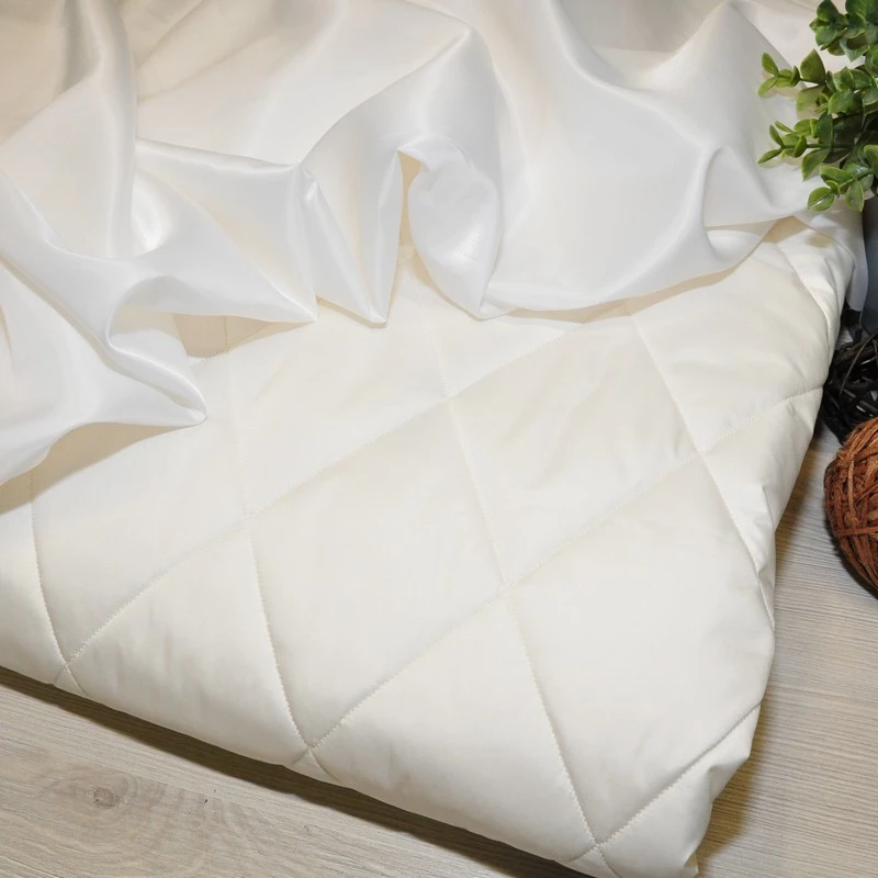 Стеганная курточная ткань, как правило, представляет собой сочетание полиэстера и синтетического утеплителя (Hoopon). Утеплитель HOOPON - это нетканое объемное полотно, состоящее из термоскрепленных волокон. Он мягкий, упругий, воздухопроницаемый, хорошо восстанавливается после сжатия. Такой утеплитель теплый, не намокает, гипоаллергенный, легко стирается и быстро сохнет, не деформируется внутри изделия. Выдерживает температурный режим от 0 до -15 градусов.Являясь хорошей защитой от ветра и дождя, полиэстер обеспечивает также и долгий срок эксплуатации готового изделия. Такая ткань используется для пошива ветровок, курток, кардиганов, плащей различного кроя, а также одежды спортивного ассортимента и предметов гардероба для активного отдыха на природе. Купить стеганную ткань можно в нашем интернет магазине.
