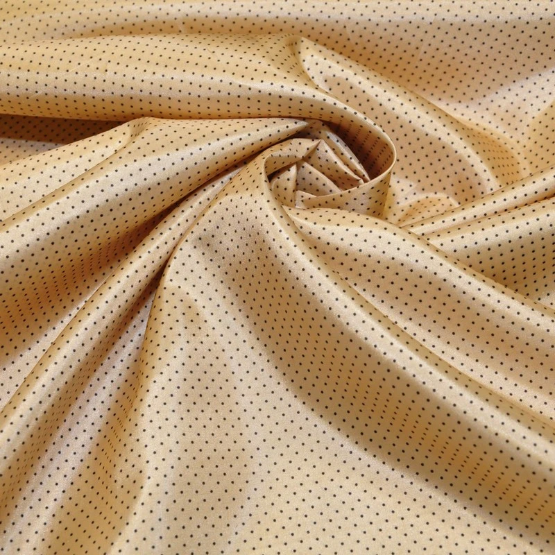 Подкладка нейлон принт горошек на бежевом фоне
