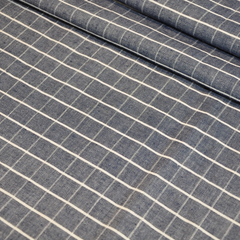 Рубашечны хлопок с фактурой льна (клетка синий)