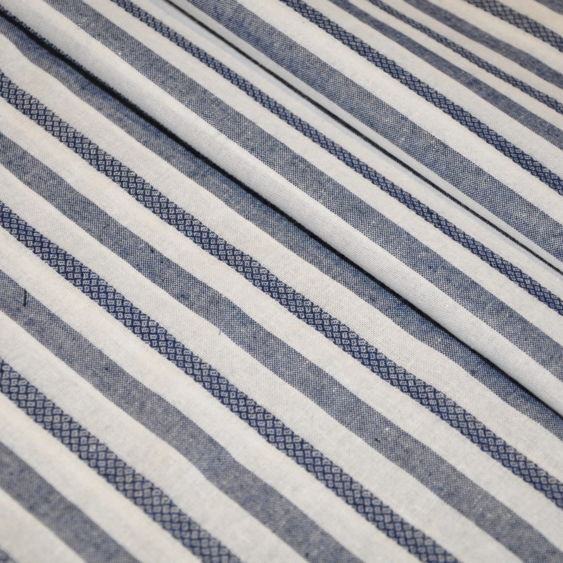 Рубашечны хлопок с фактурой льна (полоска 1см синий+белый)