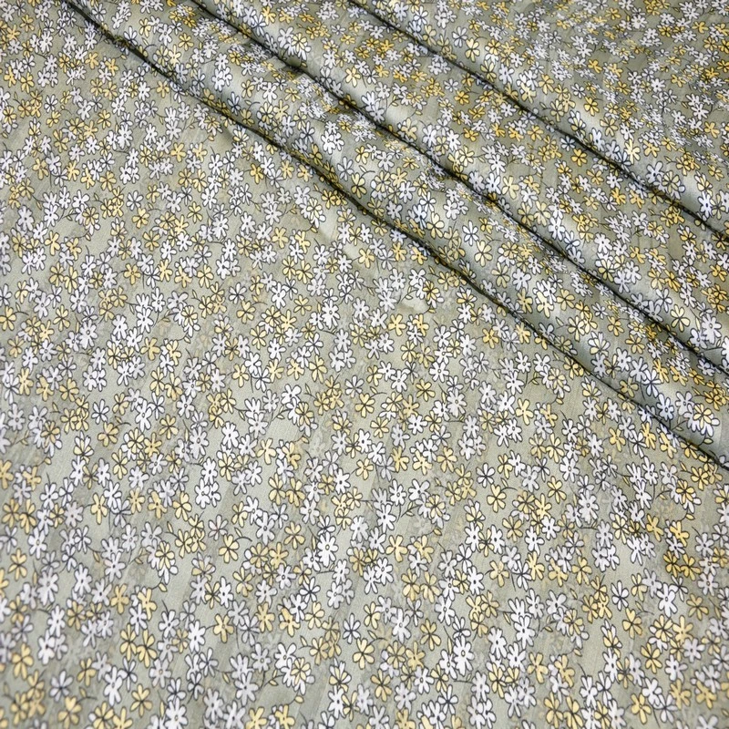 Шифон сахарный принт "Цветы на фоне хаки"