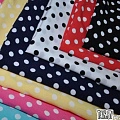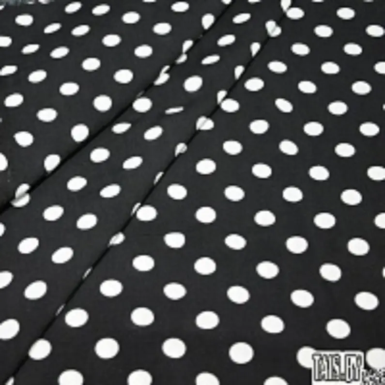 Штапель принтованный — мягкая шелковистая непрозрачная натуральная ткань, изготовленная с добавлением вискозных волокон. Благодаря высокому содержанию вискозы, штапель обладает высокой устойчивостью к свету и микробным разрушениям, хорошими гигиеническими свойствами, повышенной теплопроводностью и приятной прохладой. Данная ткань хорошо драпируется, приятна и комфортна в носке. Набивной штапель применяется для пошива летних нарядов: сарафанов, платьев, юбок, блуз, топов и т.д. Размер гороха: 1 см.
