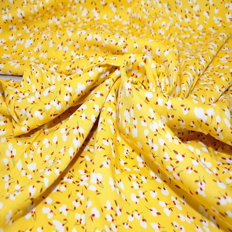 Штапель принтованный — мягкая шелковистая непрозрачная натуральная ткань, изготовленная с добавлением вискозных волокон. Благодаря высокому содержанию вискозы, штапель обладает высокой устойчивостью к свету и микробным разрушениям, хорошими гигиеническими свойствами, повышенной теплопроводностью и приятной прохладой. Данная ткань хорошо драпируется, приятна и комфортна в носке. Набивной штапель применяется для пошива летних нарядов: сарафанов, платьев, юбок, блуз, топов и т.д.