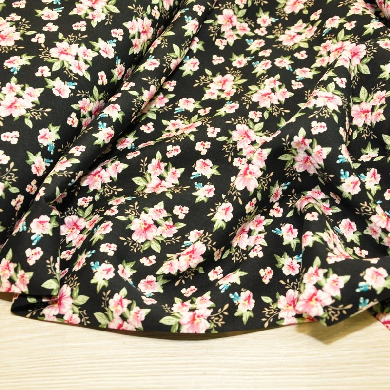 Штапель принт 23 цветочки на черном фоне