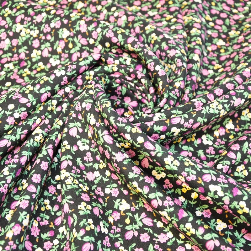 Штапель принтованный — мягкая шелковистая непрозрачная натуральная ткань, изготовленная с добавлением вискозных волокон. Благодаря высокому содержанию вискозы, штапель обладает высокой устойчивостью к свету и микробным разрушениям, хорошими гигиеническими свойствами, повышенной теплопроводностью и приятной прохладой. Данная ткань хорошо драпируется, приятна и комфортна в носке. Набивной штапель применяется для пошива летних нарядов: сарафанов, платьев, юбок, блуз, топов и т.д.