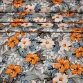 Штапель "Твил" "Лилии на серо-голубом фоне"