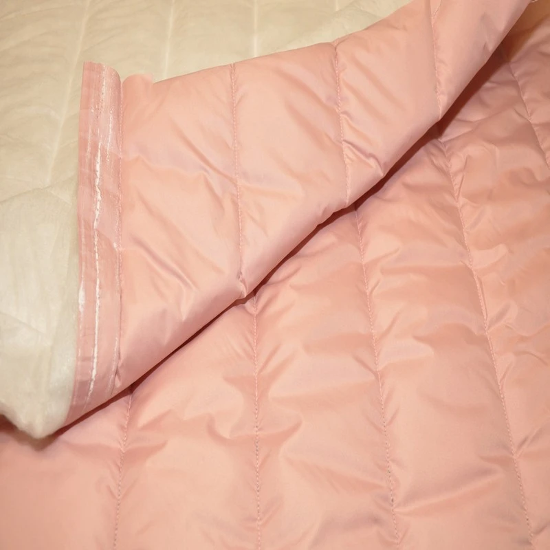 Стеганая курточная ткань, как правило, представляет собой сочетание полиэстера и синтетического утеплителя (синтепона). Являясь хорошей защитой от ветра и дождя, полиэстер обеспечивает также и долгий срок эксплуатации готового изделия. Такая ткань используется для пошива ветровок, курток, кардиганов, плащей различного кроя, а также одежды спортивного ассортимента и предметов гардероба для активного отдыха на природе.