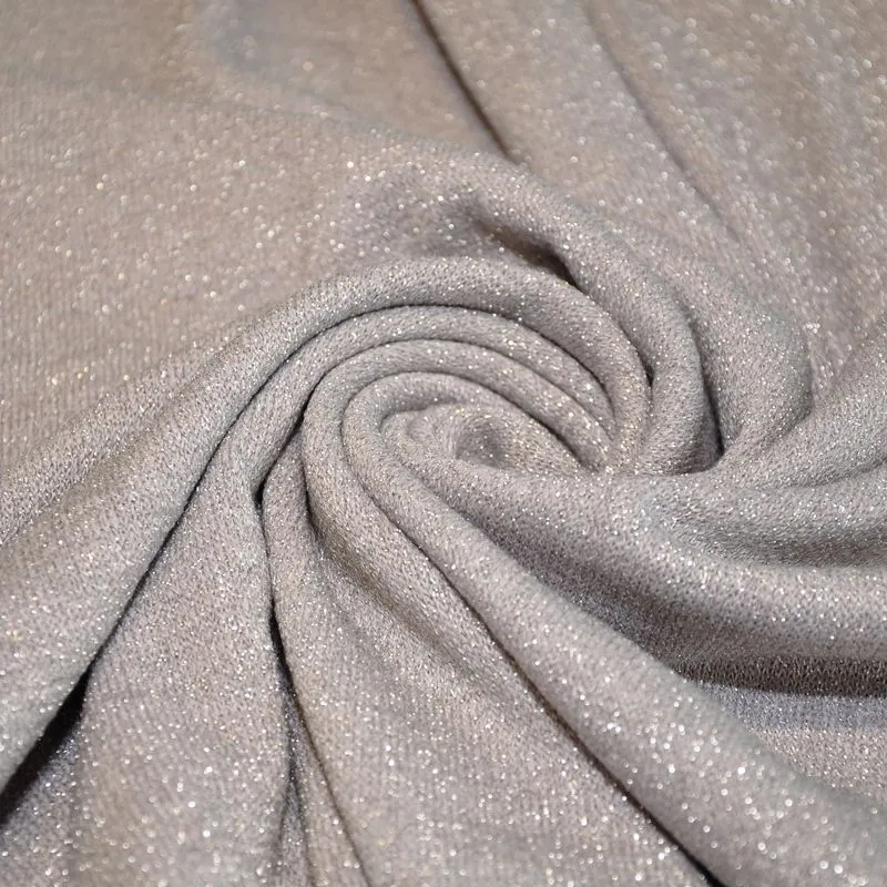 Трикотаж люрекс представляет собой легкое полотно, воздушной вязки, с вплетенными в него люрексовыми нитками, которые создают эффект объема. Трикотаж люрекс отлично подойдет для пошива платьев, туник, свитеров, кардиганов, а также всевозможным аксессуаров (шарфов-хомутов, шалей, шапок). При пошиве моделей oversize ткань будет смотреться особенно актуально, так как именно свободный крой и ткань с люрексом на пике популярности наступающего сезона.