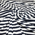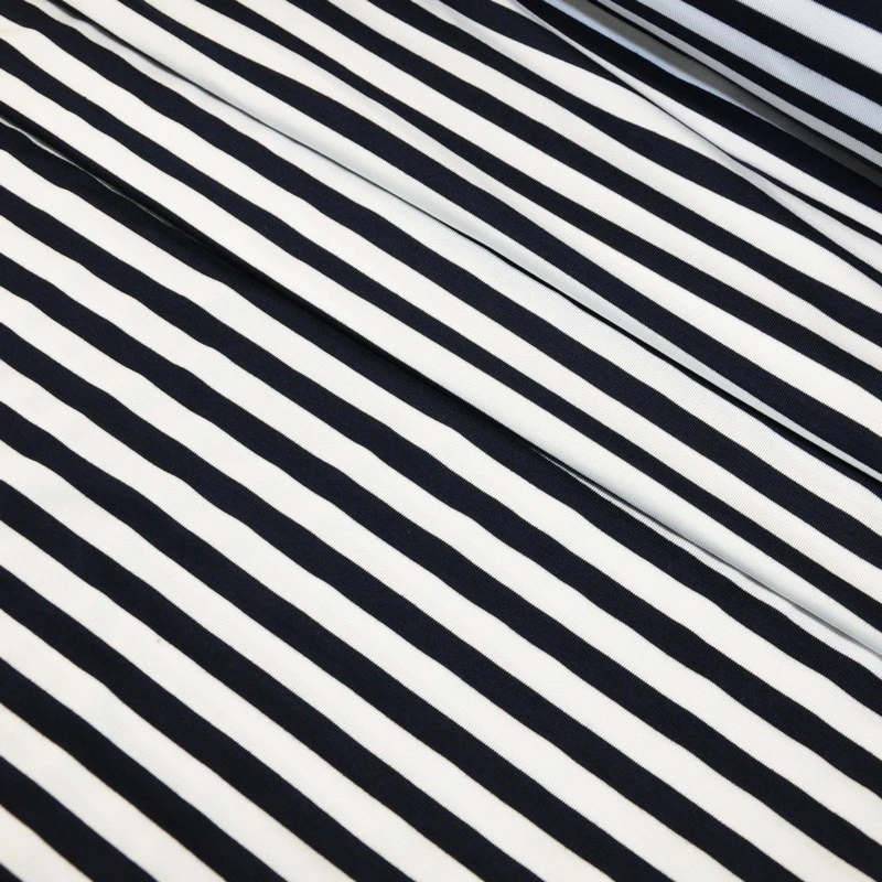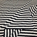 Вискоза трикотаж – мягкая трикотажная ткань, приятная на ощупь. Вискоза – это искусственное волокно из целлюлозы дерева – обладает всеми качествами натуральной ткани. Из такой ткани шьют легкие женские платья, юбки, блузки, мужские футболки, детскую одежду, даже для совсем маленьких. Ширина полоски: 1 см.